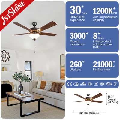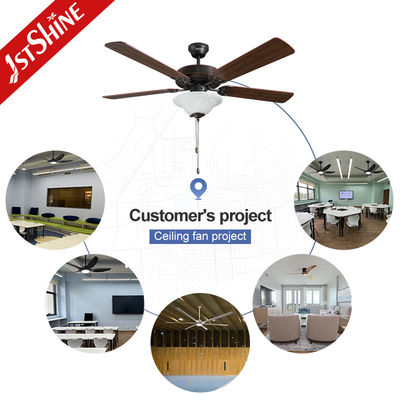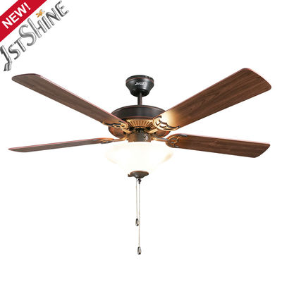 พัดลมเพดานย้อนยุคมาแรง ใบพัด MDF 5 ใบ พร้อมไฟ โซ่ดึงแบบดั้งเดิม