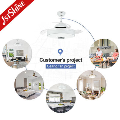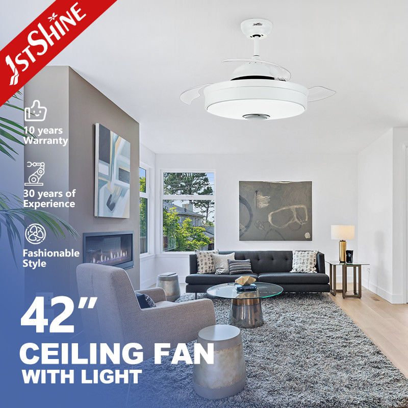 พัดลมเพดานแบบพับเก็บได้อัจฉริยะติดตั้ง HIFI ไฟ LED ที่ปรับแสงได้จะติดตามเสียงเพลงเพื่อส่องสว่างห้องของคุณ นอกจากนี้ โป๊ะโคมพิเศษที่ด้านล่างยังช่วยลดแสงสะท้อนและรับประกันการส่องสว่างที่นุ่มนวลกว่า ให้พื้นที่ในห้องของคุณเต้นรำไปกับคุณ