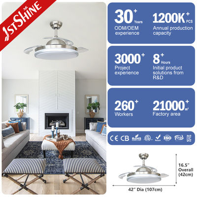 พัดลมเพดานที่ถอดได้ กว้าง 42 นิ้วเมื่อเปิดและ 21 นิ้วเมื่อพับ 3 ใบอะคริลิคจะขยายและถอนอัตโนมัติ 3 ความเร็วของพัดลมและแสง LED สามารถควบคุมด้วยรีโมทคอนโทรลหนึ่ง
