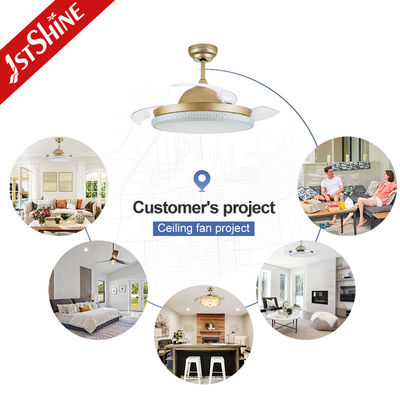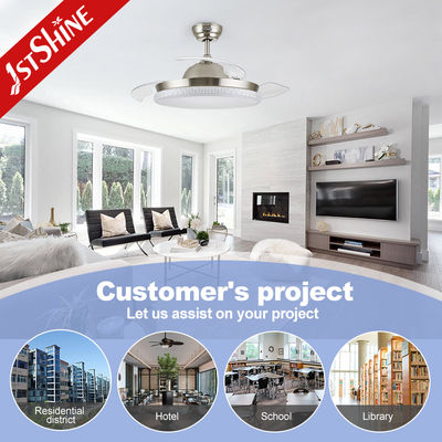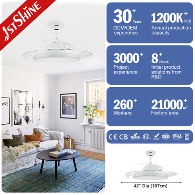 พัดลมเพดานแบบพับเก็บได้พร้อมไฟ พัดลมเพดานทันสมัยขนาด 42 นิ้ว สำหรับห้องนอน ปรับเปลี่ยนได้ 3 สี