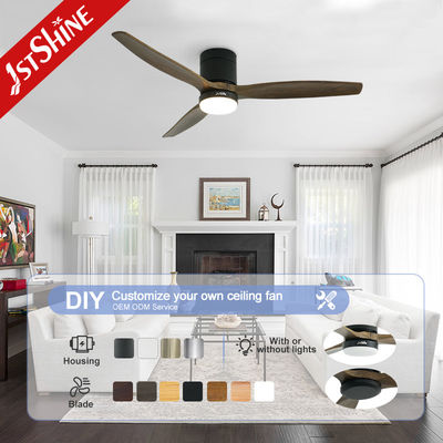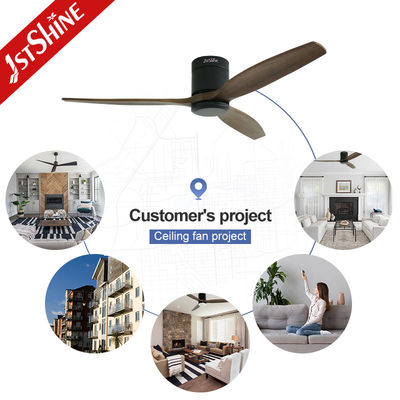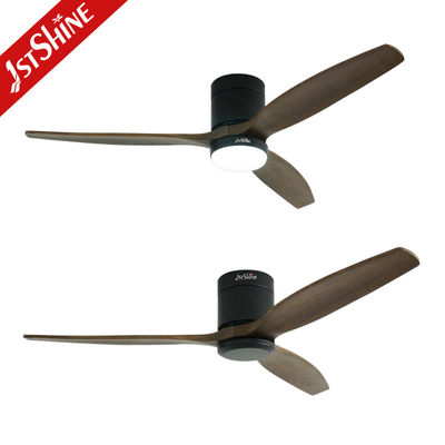 พัดลมเพดานแบบฝังเรียบขนาด 52 นิ้ว พร้อมใบพัดไม้ธรรมชาติ 3 ใบ และไฟ LED