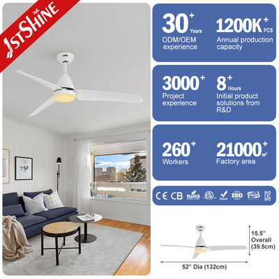 พัดลมเพดานสีขาวขนาด 52 นิ้วนี้ทำจากเหล็กพร้อมผิวสีขาว พัดลมเพดานพร้อมชุดไฟ LED นี้จะช่วยให้บ้านของคุณทันสมัยและสว่างสดใส เพิ่มสไตล์แบบฟาร์มเฮาส์และสไตล์อินดัสเทรียลให้กับบ้านของคุณ
