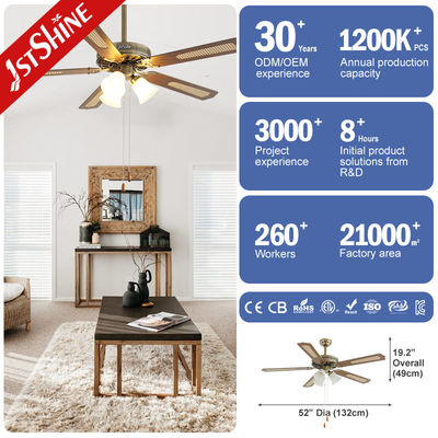 | ผิวทองเหลืองโบราณพร้อมใบพัดไม้ MDF ห้าใบ เหมาะอย่างยิ่งสำหรับการเพิ่มสัมผัสแบบคลาสสิกให้กับห้องใดๆ | ขนาดและประสิทธิภาพ |