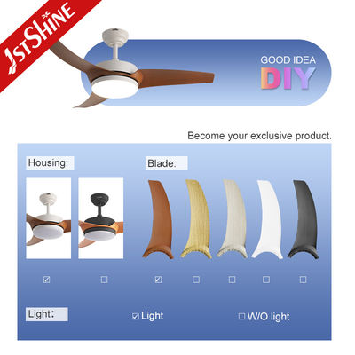 มีให้บริการด้วยสีร่างกายและใบมีดที่แตกต่างกัน, วัสดุ (ไม้แข็ง, MDF, ABS) และโหมดควบคุม (รีโมท, ผนัง, แอป, การควบคุมเสียง) |