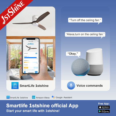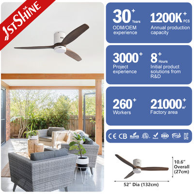 แฟนเพดานไม้แข็ง 52 นิ้ว พร้อมมอเตอร์ AC และการออกแบบการติดตั้ง Flush สําหรับห้องนั่งเล่น