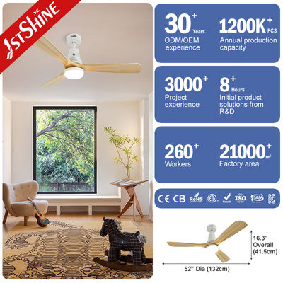 พัดลมเพดานไม้ขนาด 52 นิ้ว พร้อมมอเตอร์ DC และไฟ LED ที่สามารถดับได้