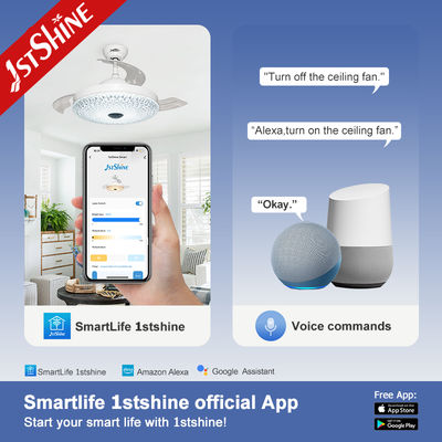 ใบพัดอะคริลิกแบบพับเก็บได้จะกางออกโดยอัตโนมัติเมื่อเปิดพัดลม และหุบกลับเมื่อปิด ทำให้รูปลักษณ์เหมือนโคมระย้าที่สะอาดตา โป๊ะโคมอะคริลิกสไตล์คริสตัลช่วยเพิ่มการกระจายแสงและนำความหรูหรามาสู่การตกแต่งภายใน