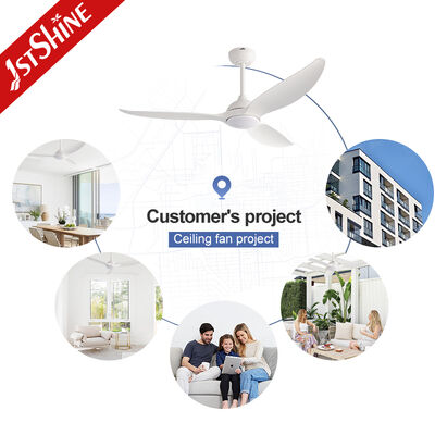 นี่พัดลมเพดาน 52 นิ้วที่ทันสมัยในสีขาวแสดงให้เห็นทั้งประสิทธิภาพในการเย็นและการส่องสไตล์โดยมีใบเล็บ ABSและการออกแบบที่เรียบง่ายและขั้นต่ํา แฟนนี่เหมาะสําหรับบ้าน, ห้องนอน และห้องนั่งเล่นที่ทันสมัยมอเตอร์ DC เงียบการประกันสภาพแวดล้อมที่สงบและประหยัดพลังงาน
